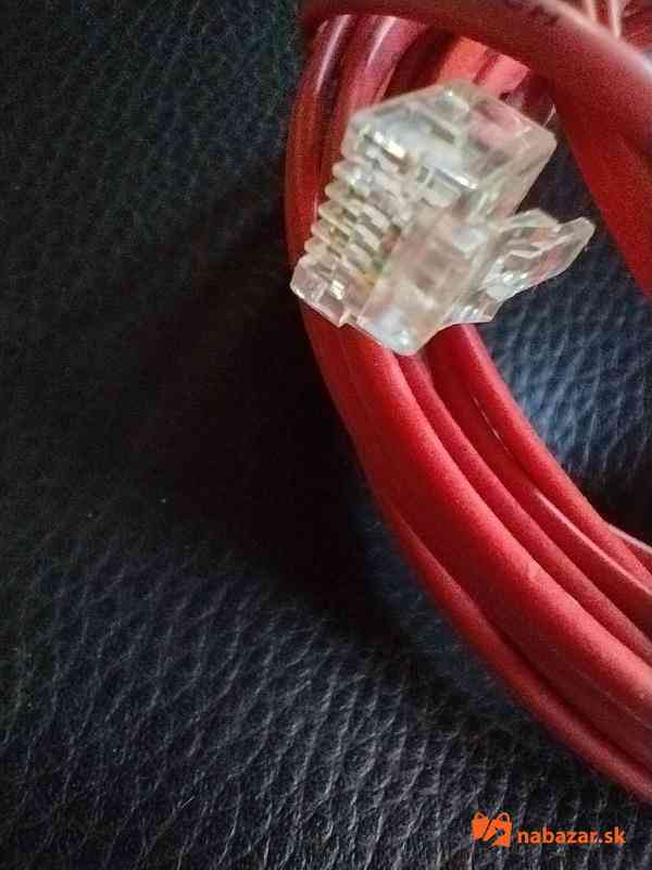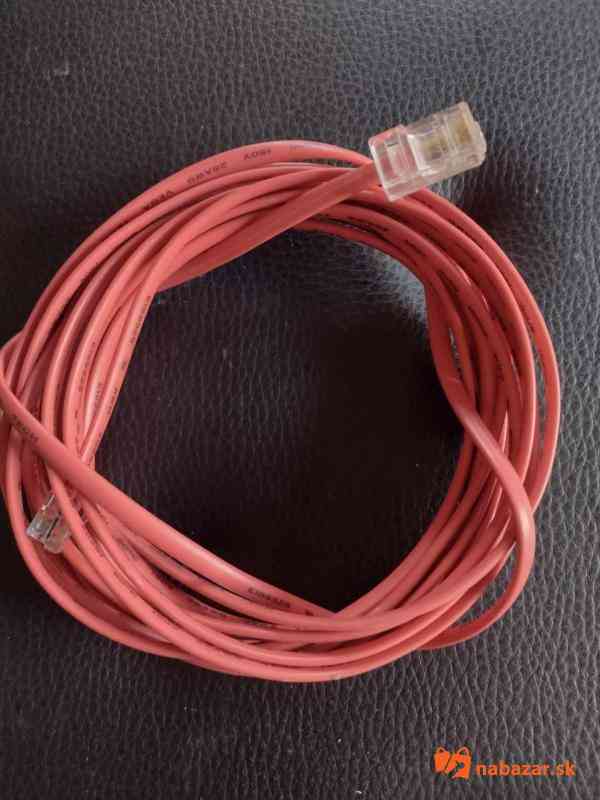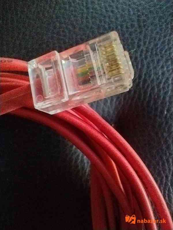 UTP kábel štvoržilový červenej farby. Na jednej strane má konektor 4P4C a na druhej 8P8C s dĺžkou 5 metrov.