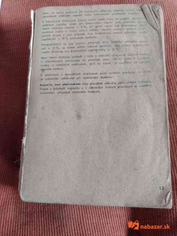Katalóg elektrónok, obrazoviek, diód, tranzistorov a integrovaných obvodov. Katalóg obsahuje podrobný popis všetkých parametrov jednotlivých súčiastok vrátane zapojenia pätíc. Sú uvedené aj ekvivalenty jednotlivých súčiastok. Veľmi praktická pomôcka pre elektrotechnikov. Titulná stránka chýba.