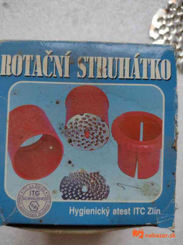 Nové nepoužité ručné strúhadlo do kuchyne. Vhodné na strúhanie malého množstva potravín. Má tri vymeniteľné kotúče. Jemné strúhadlo, hrubé strúhadlo a plátkovací kotúčik. Môžete ním strúhať syr, čokoládu, drobnú zeleninu a pod.