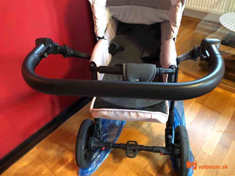 Športová časť zachovalá. Nejaké škrabance na konštrukcii, ktorým sa nedá pri nakladaní do auta vyhnúť. Na funkčnosti nič neuberajú. Je polohovateľná, aj do úplného ľahu. Dá sa dať do smeru jazdy aj do protismeru. Eko koža bezchybná.