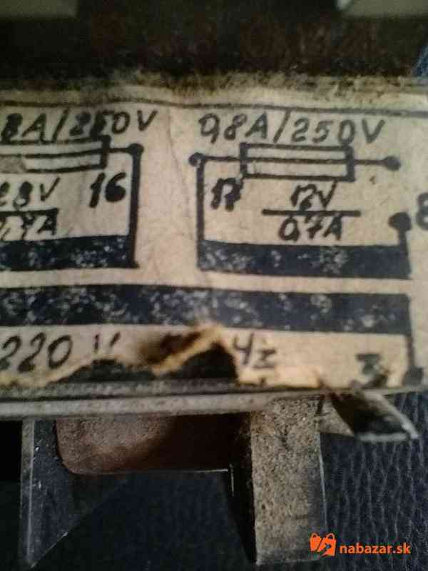 Sieťový transformátor typ 9WN 661 97.6. Primár 220 V sekundár 12 V 0,7 A a 28 V 0,1 A. Rozmery plechov sú:62 x 20 mm a výška 75 mm.
