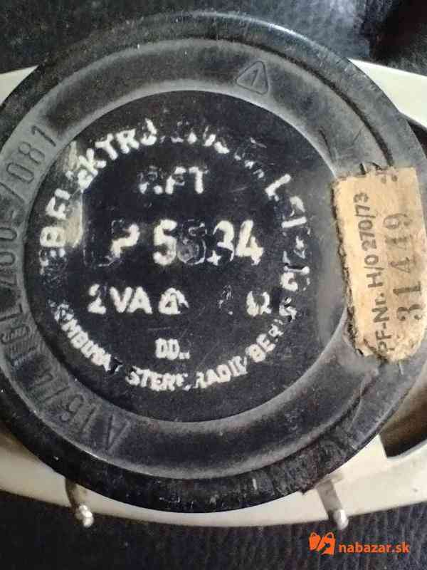 Oválny reproduktor z bývalej NDR s rozmermi 105 x 150 mm. Priemer magnetu je 60 mm a celková výška 40 mm. Výkon 2 VA