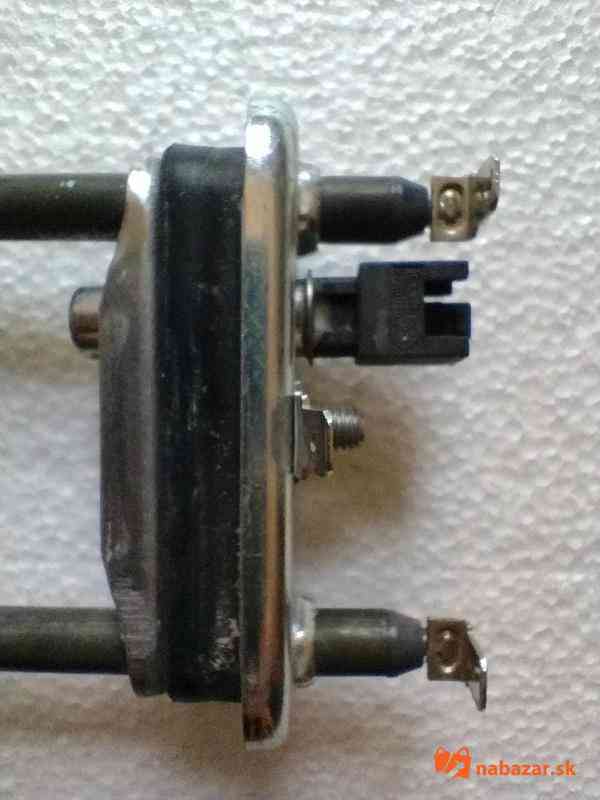 Výhrevná špirála automatickej pračky. Dĺžka výhrevnej časti 220 mm. Celková dĺžka aj s kontaktami 260 mm. Šírka 67 mm, Napätie 230 V a výkon 2050 Wattov