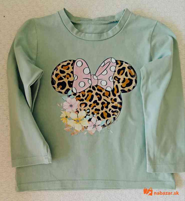 Bavlnená súprava tepláky a tričko s motívom Minnie, pevná guma pekne drží na páse, spevnené spodky, oblečená cca 2krát, veľkosť 110.