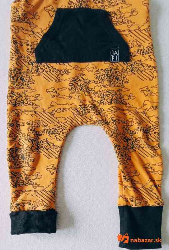 Chlapčenské trakače JAPI, mäkká príjemná bavlna, dajú sa podhýnať na nohe, čiže sú akoby rastúce, veľkosť 86,ale po zahnutý sadnú aj na 80.