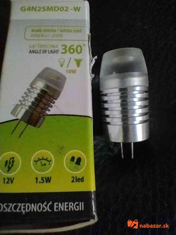 Nová LED žiarovka s päticou G 4 ako náhrada za halogénovú žiarovku. Má omnoho vyššiu životnosť a menšiu spotrebu elektrickej energie.
