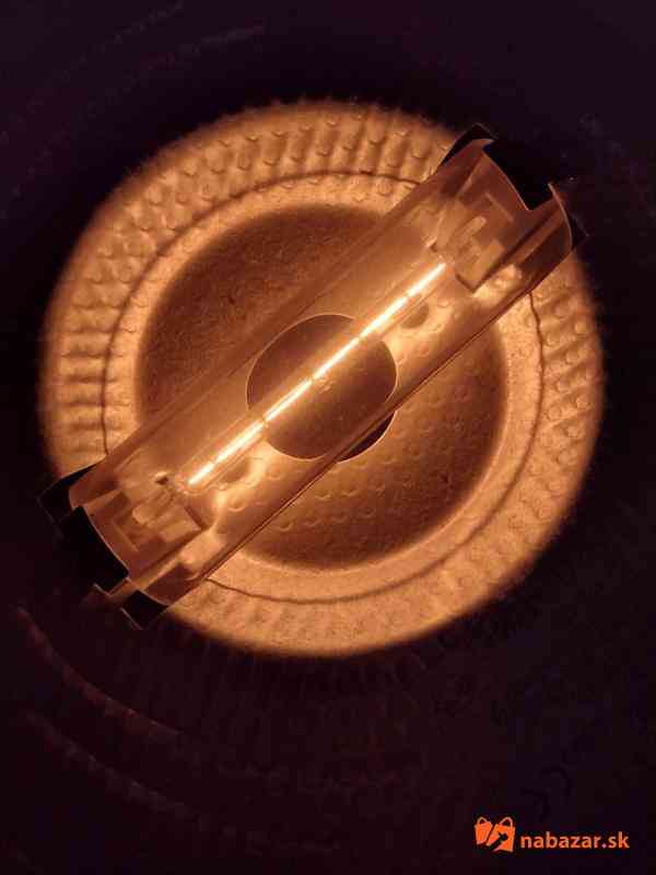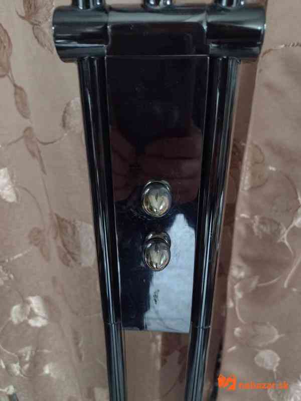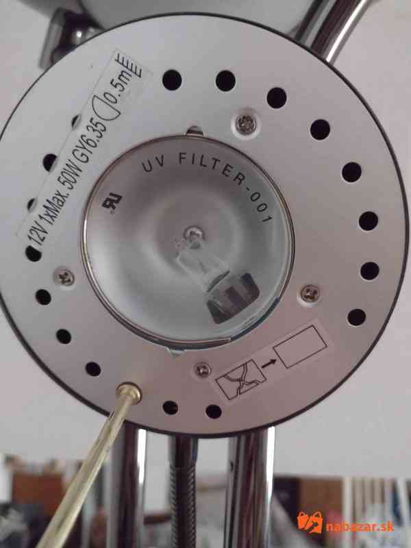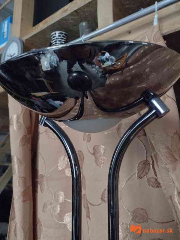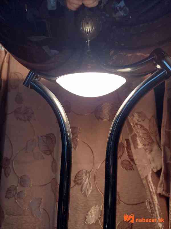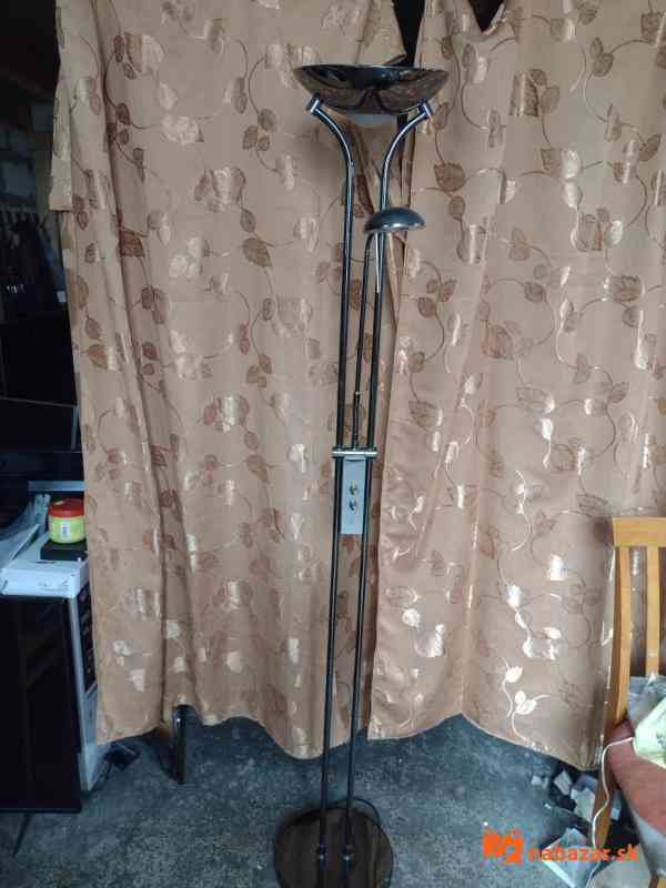 Moderná stojaca lampa v lesklom čiernom prevedení. Lampa má dve nezávislé halogénové regulovateľné svietidlá. Horné slúži na osvetlenie miestnosti a druhé je na čítanie. Intenzita osvetlenia je elektronicky plynule regulovateľná a nezávislá. Každé svietidlo možno samostatne nastaviť na požadovanú svietivosť od minima na maximum. K lampe darujem jednu novú náhradnú žiarovku. Prípadný záujemca si musí zabezpečiť osobný odber lebo pre veľkosť je nemožné lampu posielať.