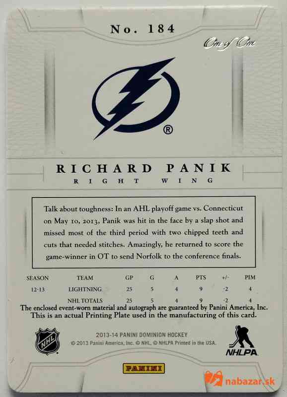 Predám: 2013-14 Panini Dominion Black #184 Richard Pánik SN 1/1