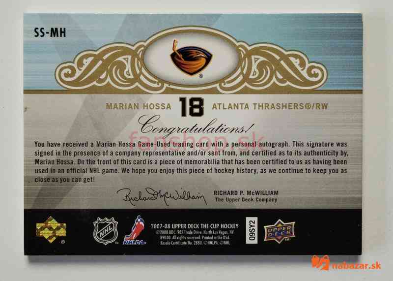 Predám: 2007-08 Upper Deck The Cup Scripted Swatches #SS-MH Marián Hossa SN 23/25