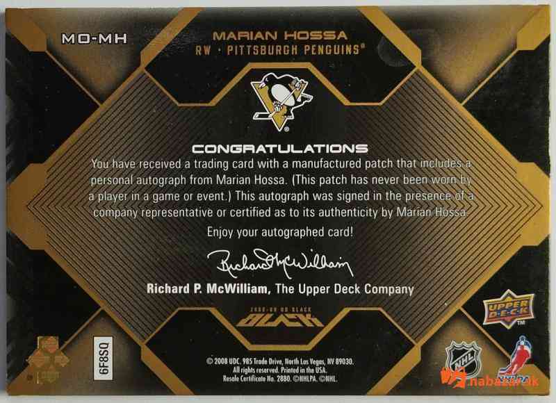 Predám: 2008-09 UD Black Marks of Obsidian Autographs Patches Gold #MO-MH MariánHossa SN