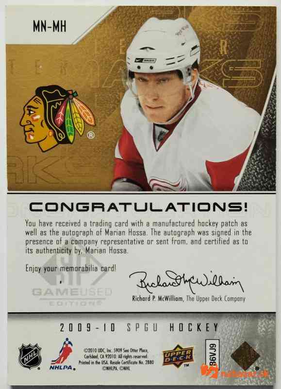 Predám: 2009-10 SP Game Used Marks of a Nation #MN-MH Marián Hossa SN 06/50