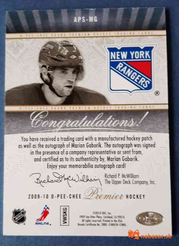 Predám: Upper Deck Marian GABORIK 2009-10 OPC Premier Autographed Premier Stitchings APS