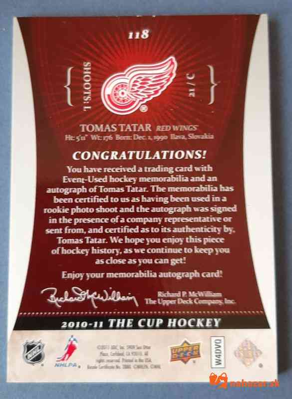 Predám: Upper Deck Tomas TATAR UD The CUP NHL 2010-11 Autographed ROOKIE 156/249