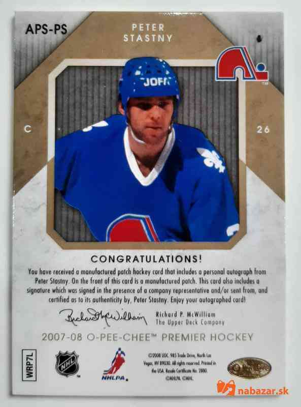 Predám: 2007-08 OPC Premier Autographed Premier Stitchings #APS-PS Peter STASTNY 38/50
