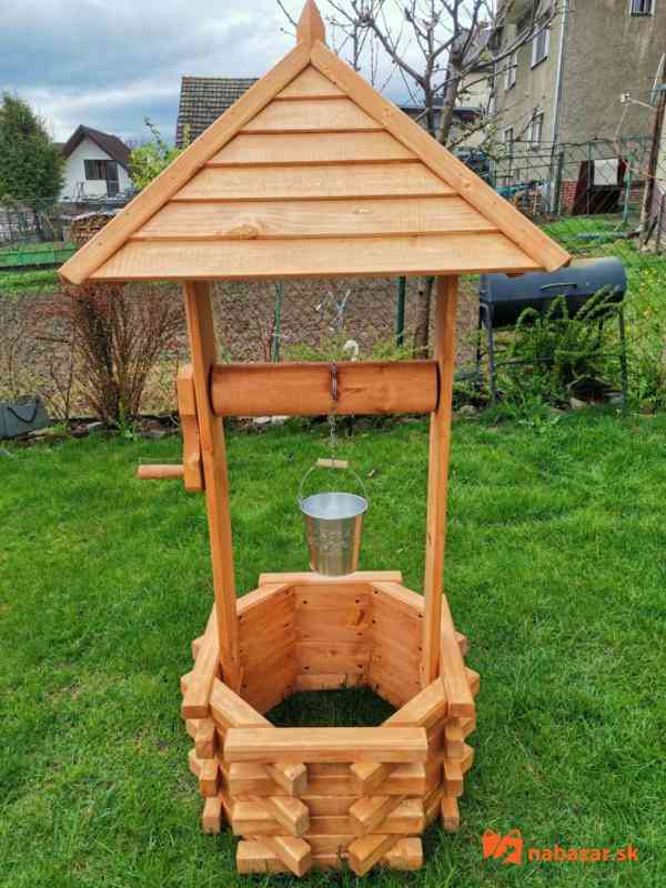 - Rozmer výška studne cca 130 cm, strecha 66x66 cm, spod. priemer 66x66 cm, CENA 95 €,