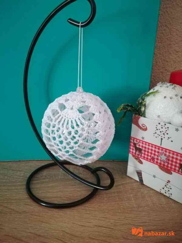 Obháčkovaná priesvitná plastová guľa o priemere 8,5 cm s uškom na zavesenie na vianočný stromček alebo vhodná len ako dekorácia. Cena za 1 kus je 3,-Eur. Doba dodania závisí od počtu požadovaných kusov.