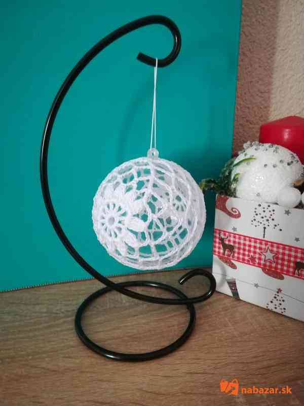 Obháčkovaná priesvitná plastová guľa o priemere 8,5 cm s uškom na zavesenie na vianočný stromček alebo vhodná len ako dekorácia. Cena za 1 kus je 3,-Eur. Doba dodania závisí od počtu požadovaných kusov.