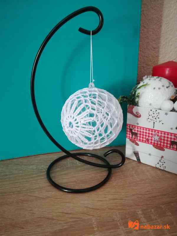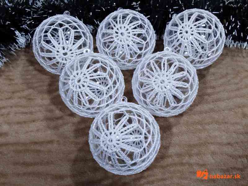Obháčkovaná priesvitná plastová guľa o priemere 8,5 cm s uškom na zavesenie na vianočný stromček alebo vhodná len ako dekorácia. Cena za 1 kus je 3,-Eur. Doba dodania závisí od počtu požadovaných kusov.