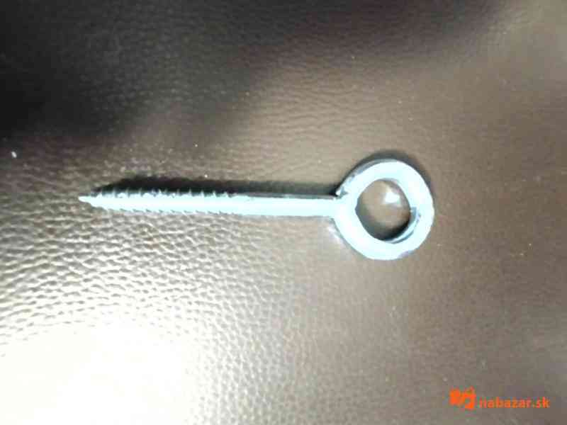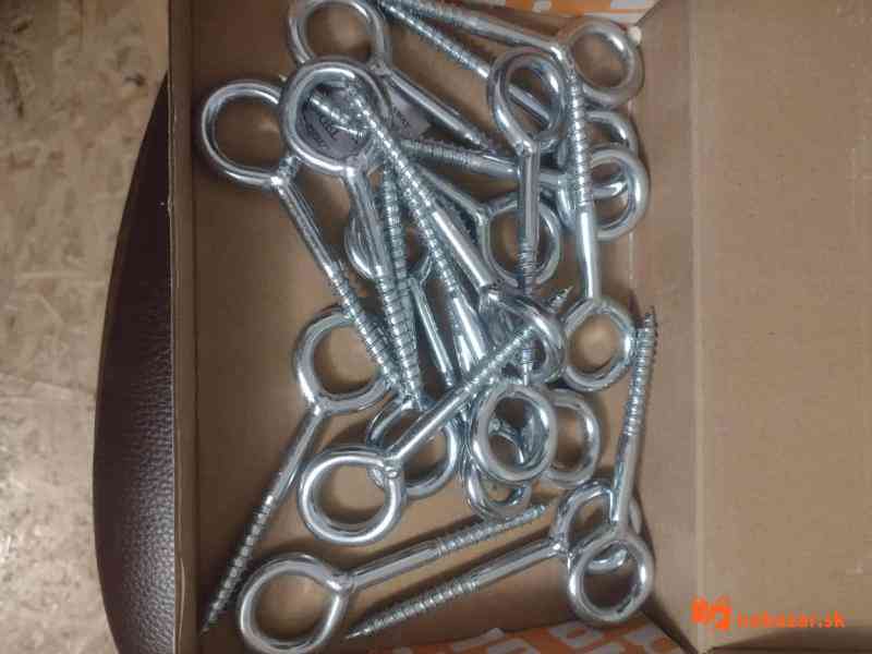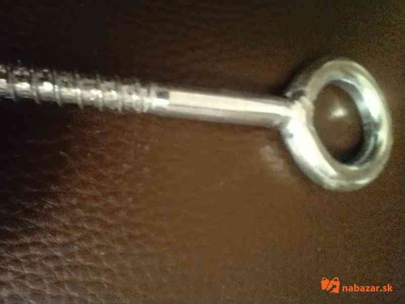 Nová skrutka do dreva s okom. Oko má vonkajší priemer 41 mm, vnútorný priemer 22 mm, priemer závitu je 8 mm a dĺžka zavitu 45 mm. Dĺžka tyčky je 80 mm a celková dĺžka oka je 120 mm. Mám ich 20 kusov a cena je za 1 kus. V prípade odberu všetkých naraz bude cena za kus 1,- €. Posielam cez Packetu a k cene je nutné pripočítať prepravné náklady. Požadujem platbu vopred na účet.