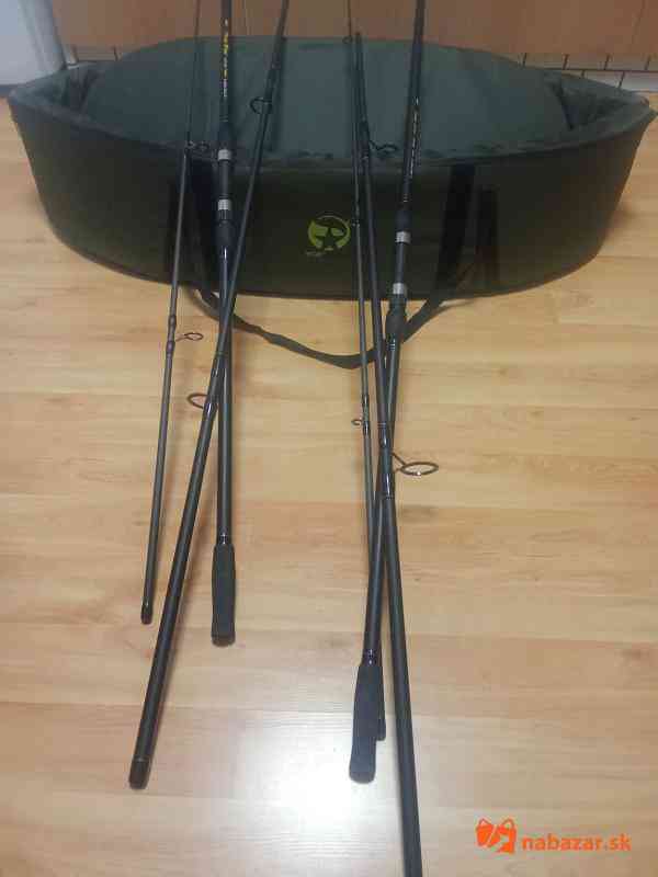 Predam z dvovodu ukončenia rybarčenia vaňičkovú podložku a dva kuse naviakou na oby dvoc je navinuty silon 0,35mm vid.priložene foto na jednom menšie odranie vid foto plus dve udice trojdielne vid.foto